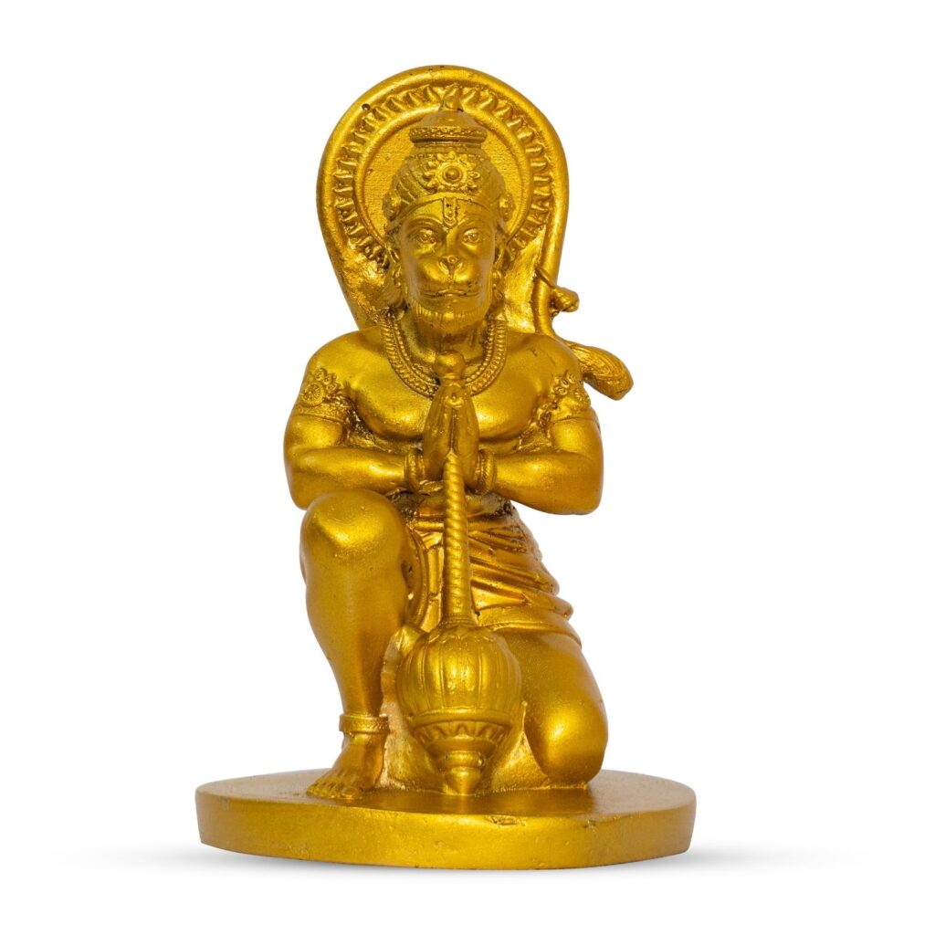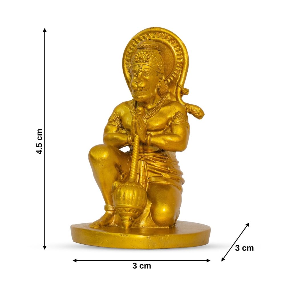 HanumanJi golden idol brings strength, peace, and devotion to your worship. Ideal for pooja, temple, home decor, and prayer rituals. Resin murti symbolizes divine religious presence.