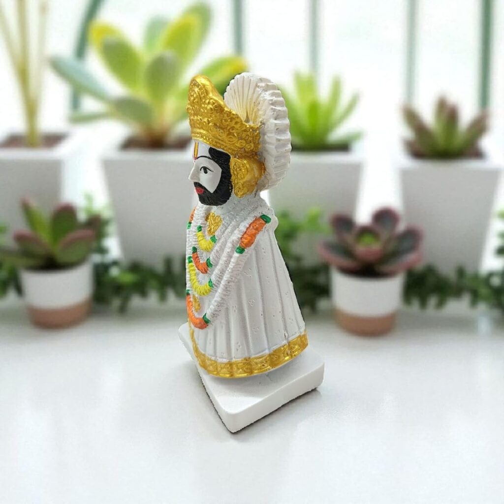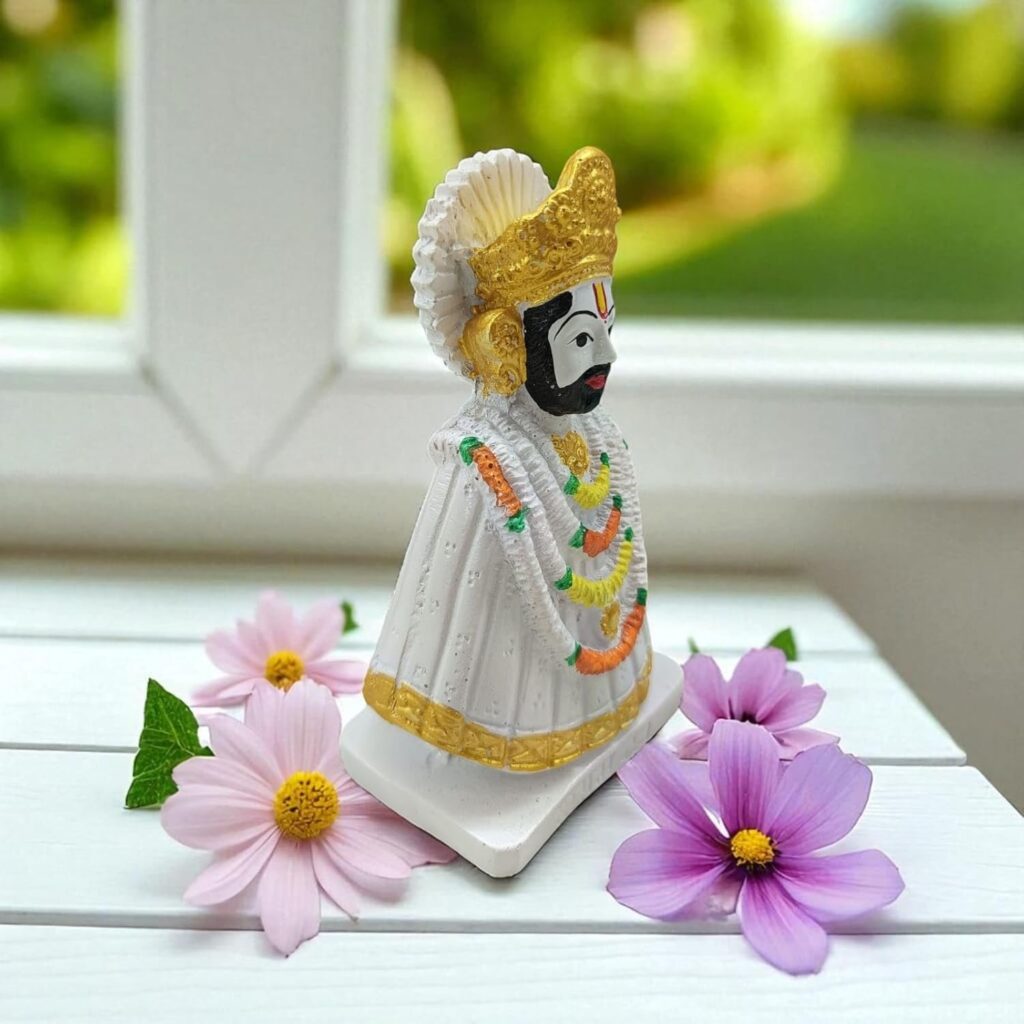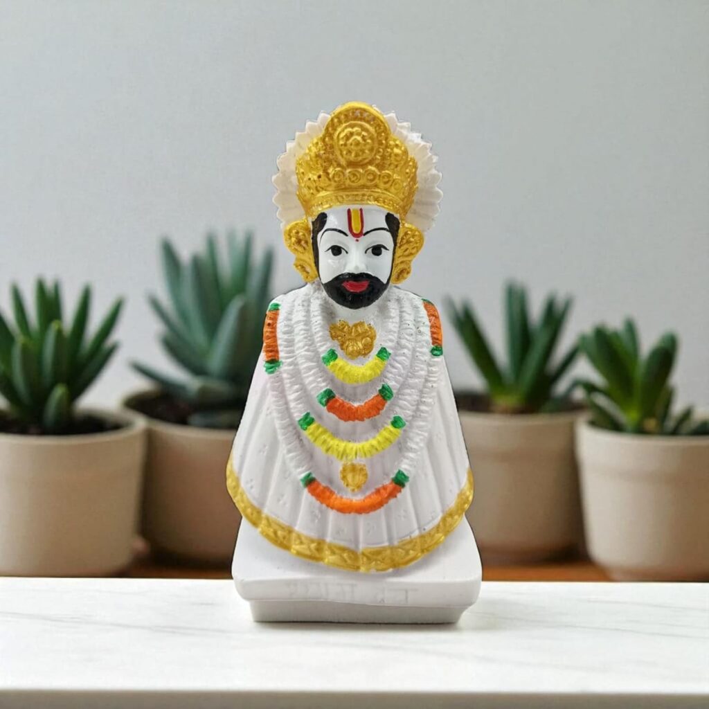 This Khatu Shyam idol is a perfect statue for your home temple or pooja setup, beautifully designed as a figurine for devotional purposes and made using resin for long-lasting decorative use.