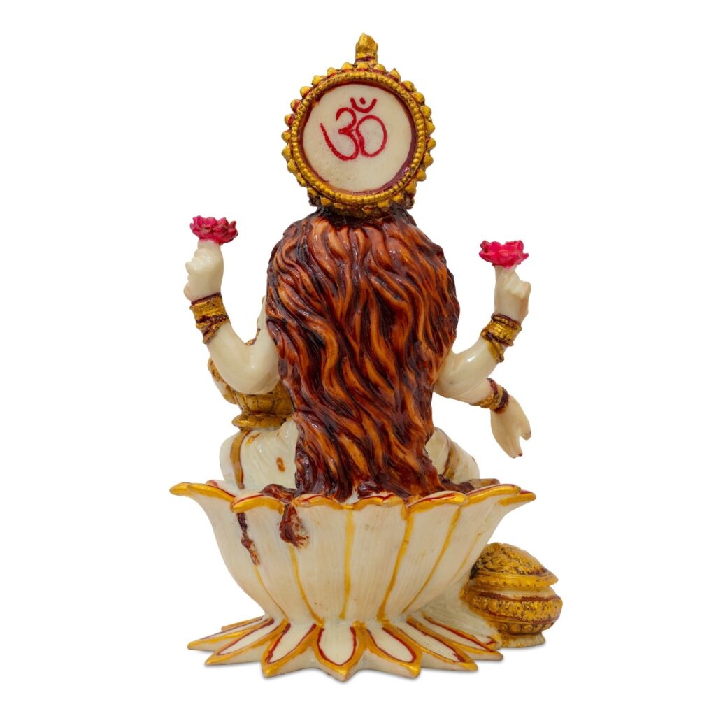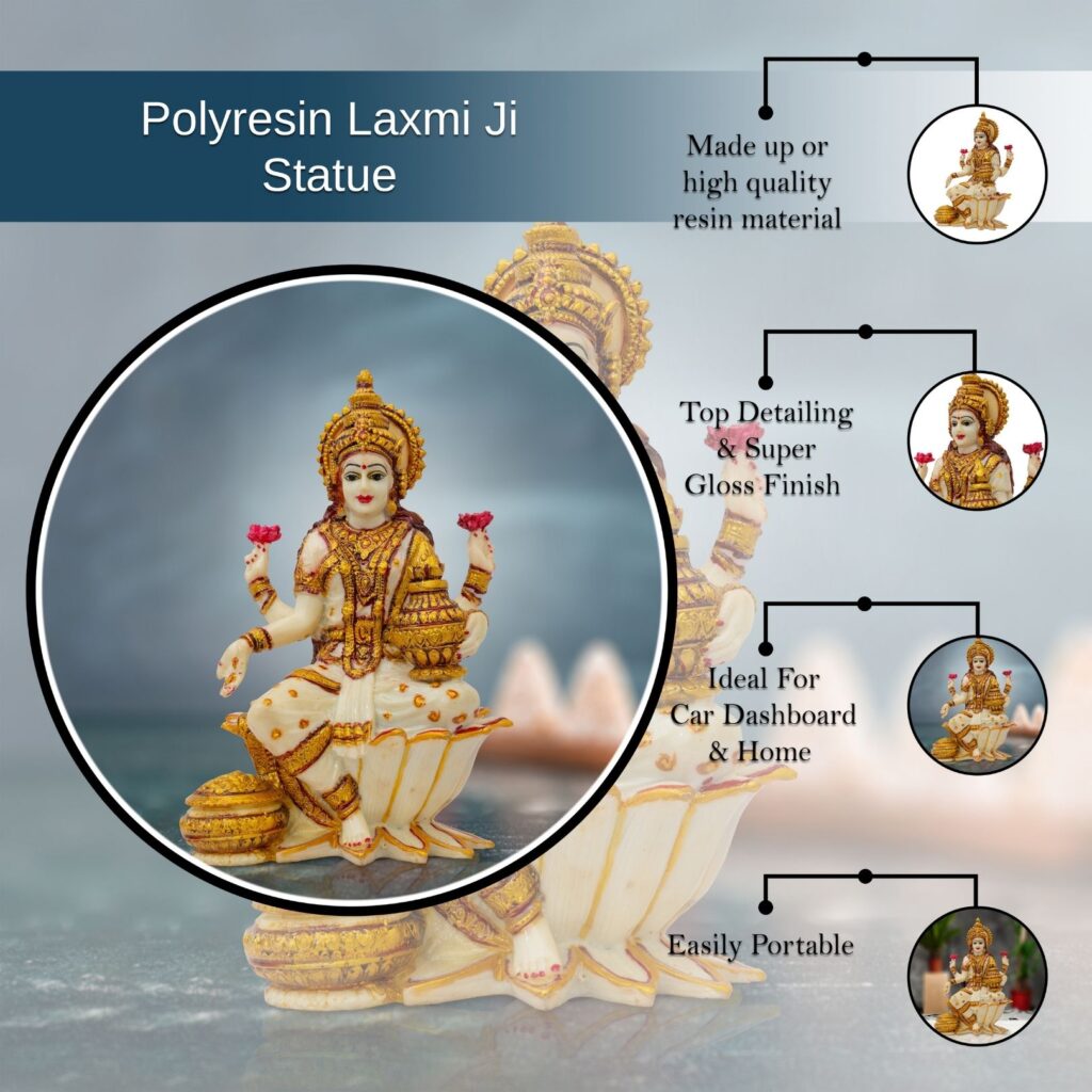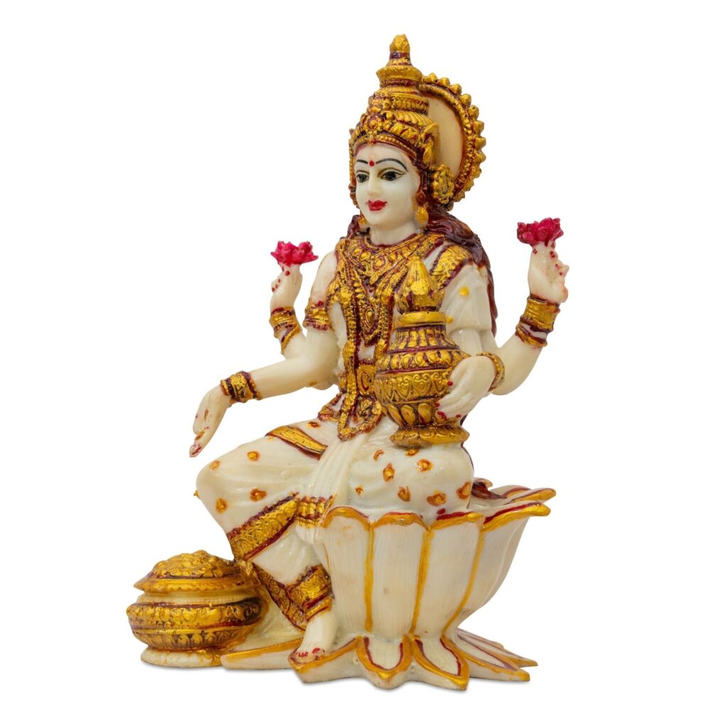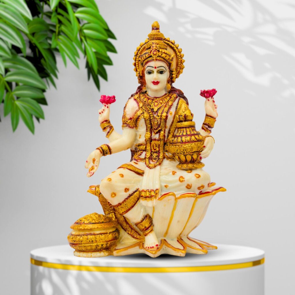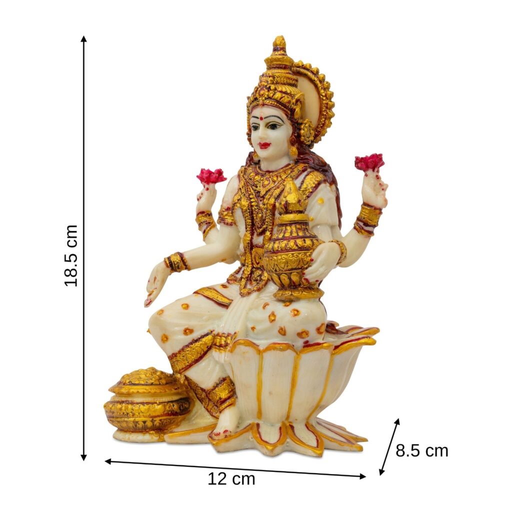Enhance your rituals with this pooja-perfect murti; a handcrafted decorative Marble dust idol for temple or home, radiating spiritual charm, religious devotion, and sacred tradition of the goddess Laxmi.