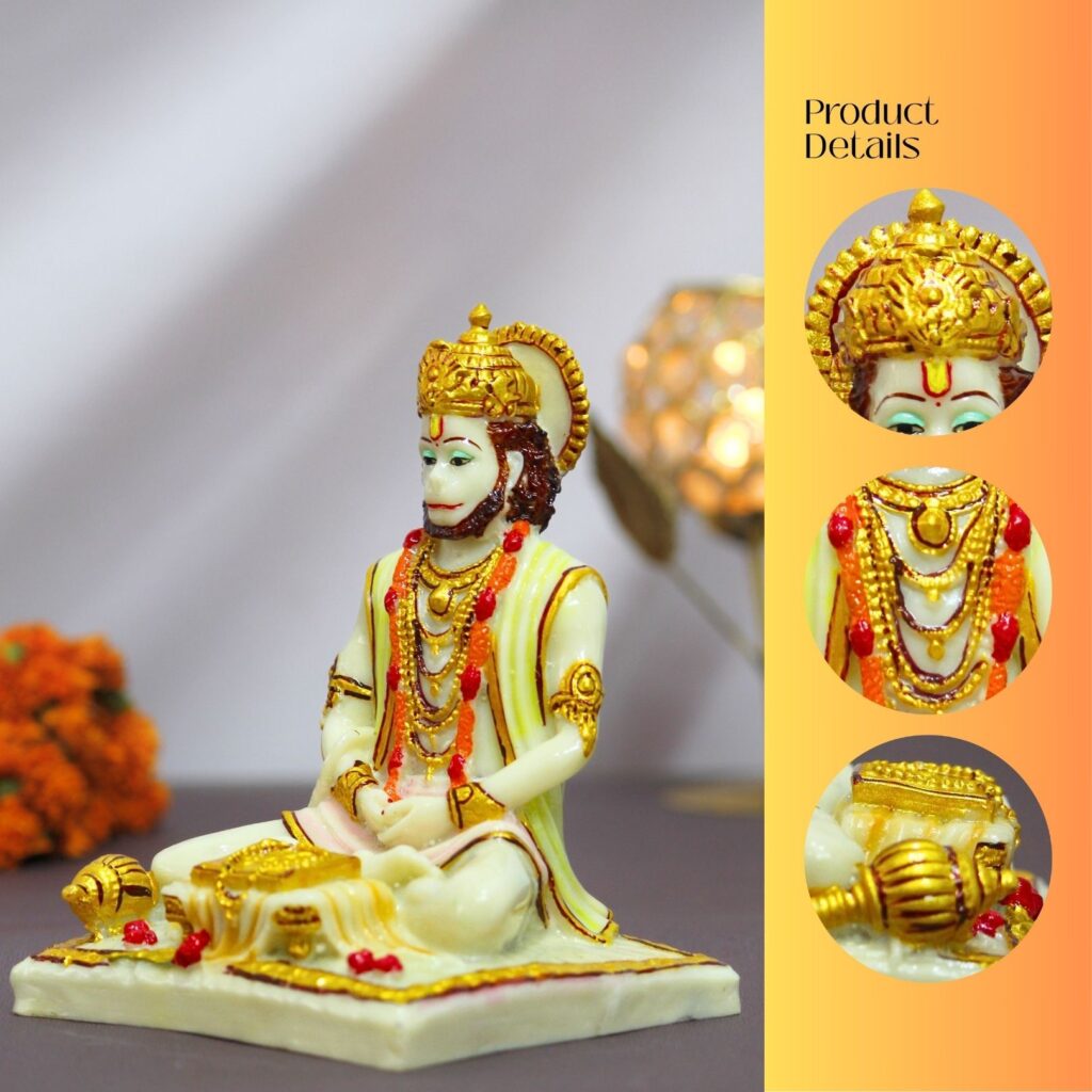 Compact Yet Graceful Design: Place this elegant Hanuman Idol for Office Desk for protection and positive energy at work. It’s also great as a Hanuman Ji Idol for Car Dashboard, with divine detailing inspired by Bajrangbali Sitting Idol posture and crafted as a Hindu God Hanuman Idol.