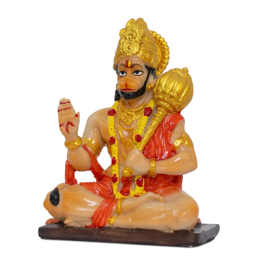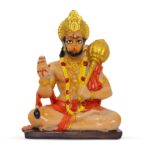 This Blessing Hanuman Idol features a Multicolor finish and a seated Murti of Bajrangbali holding a Gada, ideal for Temple, Home, Puja, Decor, and as a divine Statue.