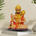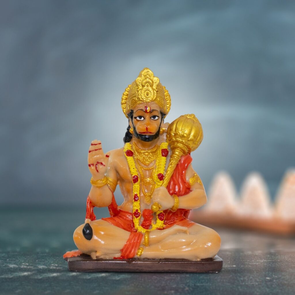 Bring Spiritual vibes with this Sacred Lord Hanuman Murti in Sitting posture, holding a Gada, ideal for Puja, Showpiece, Temple, Home, and gifting with Devotion and Strength.