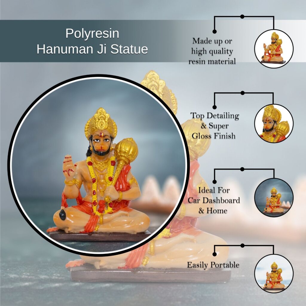 Add sacred charm with this Resin Blessing Hanuman Statue in Multicolor, a powerful Idol of Bajrangbali holding Gada, great for Home, Puja, and spiritual Decor purposes.
